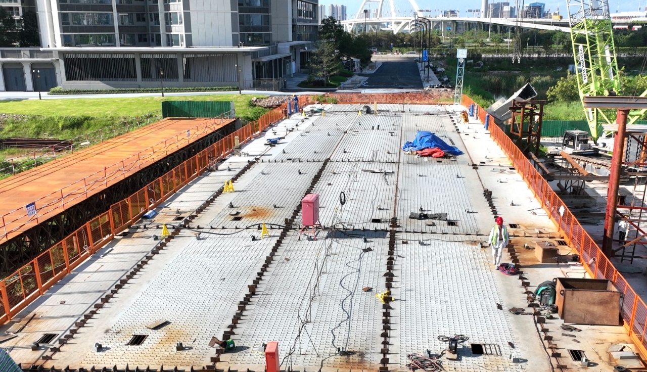 6月10日,随着最后一块32.85吨重钢箱梁精准落位,广州南沙横沥岛尖中轴涌4号桥主梁钢箱梁完成合龙,桥梁建设取得关键性进展。